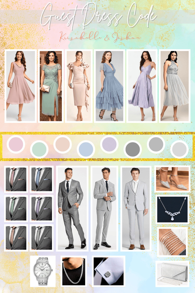 This is a formal event. Please follow the dress code and color palette indicated for your role in your invitation. We’d love for everyone to blend beautifully into the royal scenery.